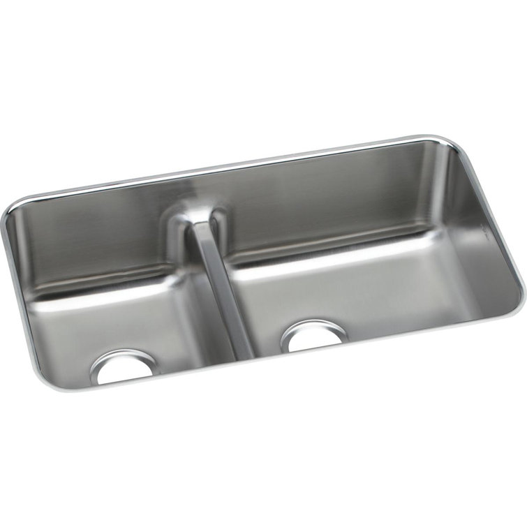 No hole stainless steel double bowl undermount kitchen sink in lustrous satin (eluhaqd32179) at ferguson. Elkay eluhaqd32179 gourmet lustertone stainless steel double bowl undermount sink; An elkay lustertone classic stainless steel sink looks as great on day 3,000 as it does on day one.
