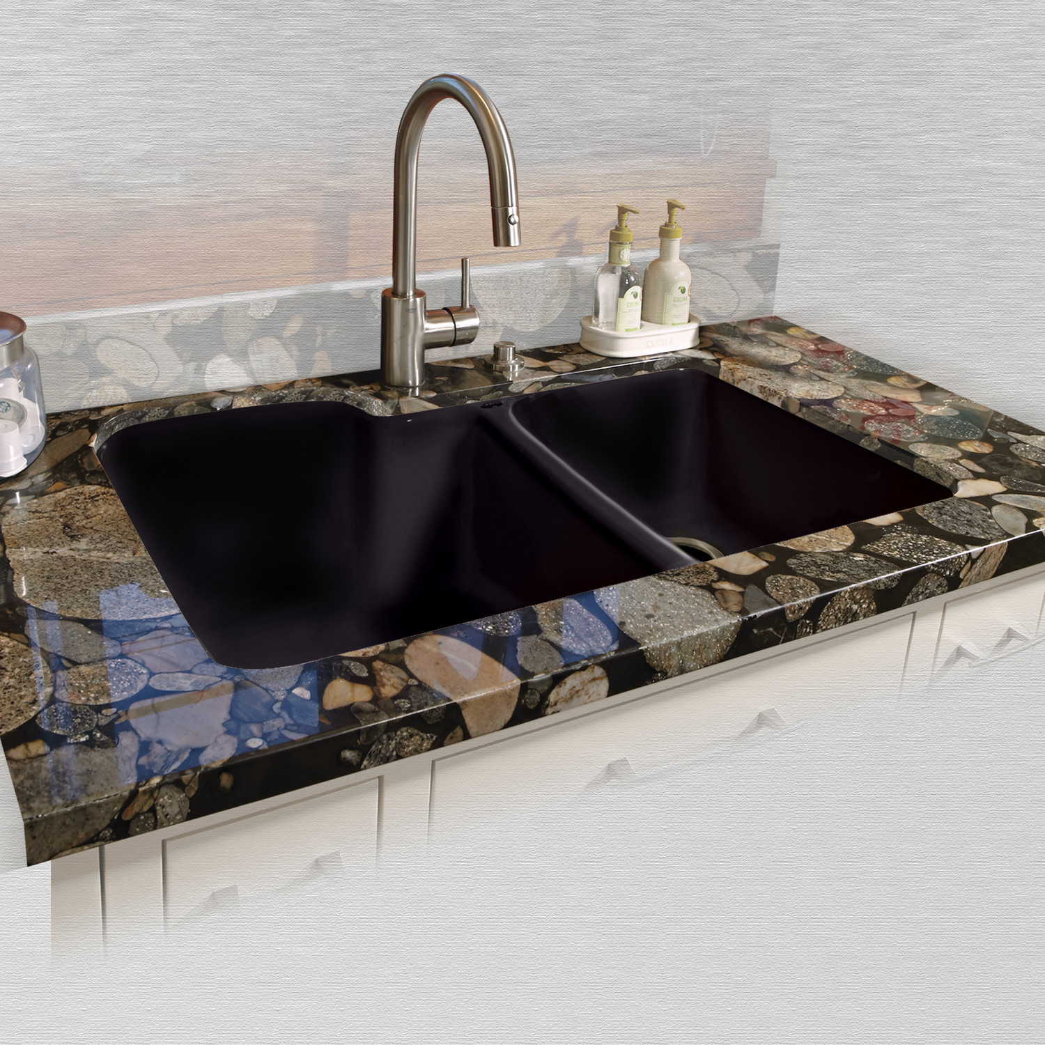 Miseno MCI350UM Black 33" Double Basin Undermount Cast Iron Kitchen