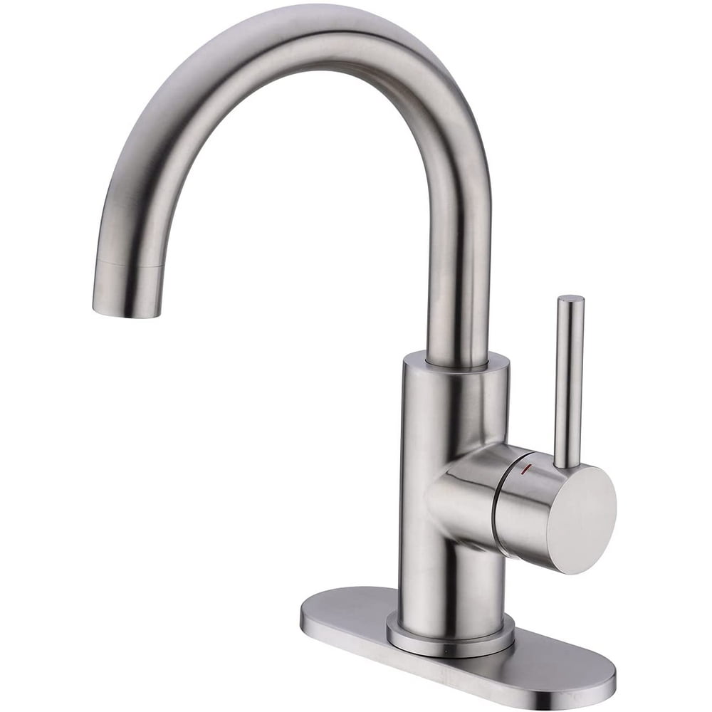 Roddex wet bar sink faucet stainless steel one hole 360 swivel bar mixer with 3 hole cover deck plate small modern single handle kitchen tap for bath bathroom sink prep sink, brushed nickel. The black single hole sink faucet's total tall is 13.6”, spout height is 6.8” and the spout reach is 6.8”.