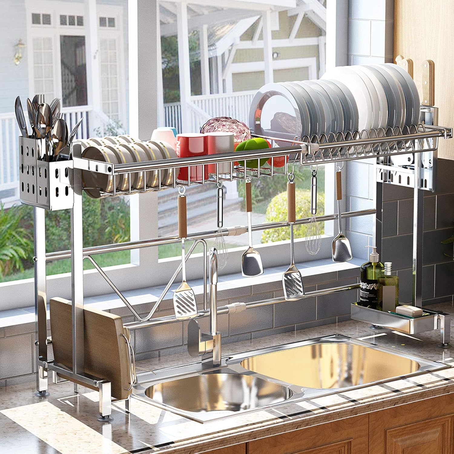 Dish drying rack, sntd over the sink dish drying rack adjustable ( from 33.8 to 41.5), 2 tier dish rack with utensil holder sink caddy stainless steel dish drainer for kitchen counter, black. To learn more about how and for what purposes amazon uses personal information (such as amazon store order history),. 4.1 out of 5 stars 211.