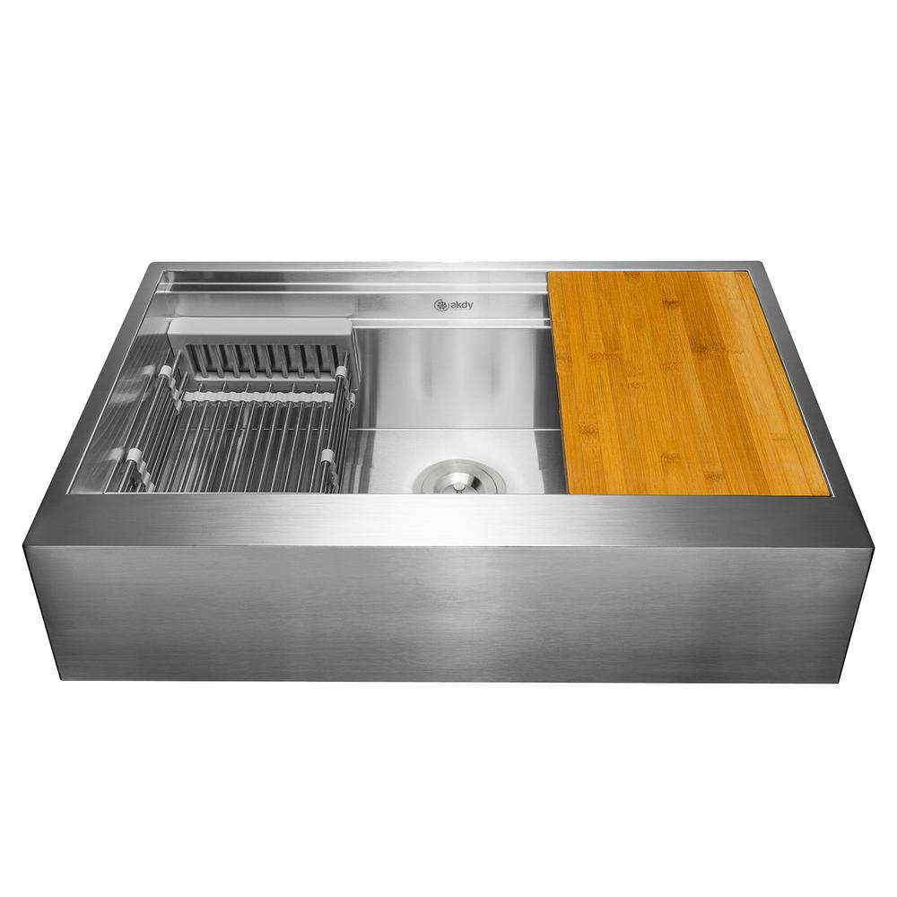 Apron farmhouse undermount kitchen sink has a full basin with the ability to support the included adjustable tray and cutting board utilizing the double ledge that runs along the kitchen sink. Akdy handcrafted all in one apron mount 30 in x 20 in x 9 in single bowl kitchen sink in stainless steel with accessories ks0237 the home depot. Apron farmhouse undermount kitchen sink has a full basin with the ability to support the included adjustable tray and cutting board utilizing the double ledge that runs along the kitchen sink.