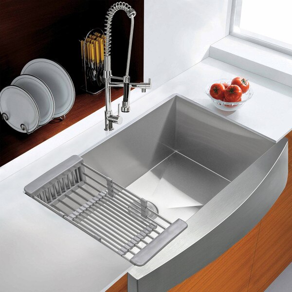 Our apron undermount sink fits nicely into homes with traditional styling. Akdy ks0125 handcrafted all in one apron front stainless steel 33 in x 22 in x 9 in single bowl kitchen sink with tray and drain ks0125304107862 download pdf instruction manual and user guide. Spring neck kitchen faucet, drying rack, sink grid, drain strainer, and all mounting hardware.