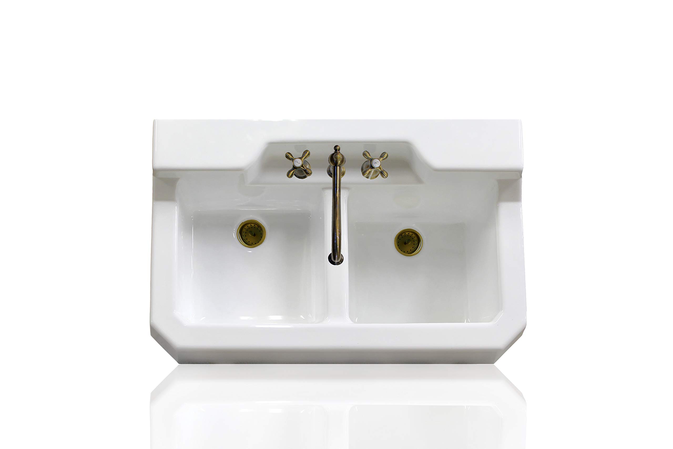 Large Double Basin High Back Farmhouse Style Sink With Apron Front