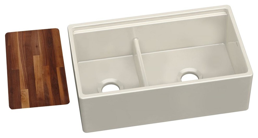 It also looks almost identical to enameled cast iron, so it was the perfect choice for our family. 50/50 (3) number of faucet holes. Single bowl farmhouse apron front kitchen sink in biscuit.