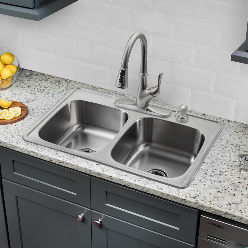 Soleil 33" L x 22" W Double Bowl DropIn Stainless Steel Kitchen Sink