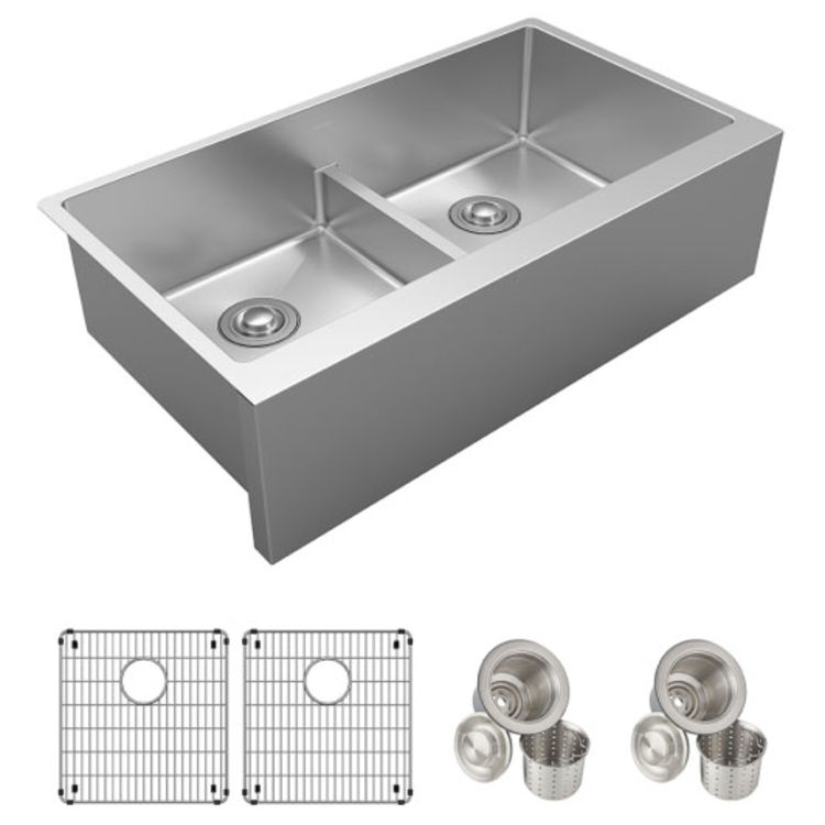 Double bowl sink handmade farmhouse apron kitchen sink without workstation this handmade sink is made of stainless steel this handmade sink is made of stainless steel which is corrosion resistant and tough. Shop our curated selection of stainless steel farmhouse, apron kitchen sinks and sink sets. 50/50 (9) 60/40 (7) sink gauge.