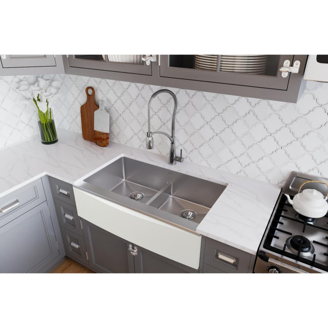 36 stainless steel curved front farm apron 60/40 double bowl kitchen sink by emoderndecor (18) $422. Sometimes it’s not easy to decide between a single or double basin fixture. American standard offers a wide variety of farm sinks in cast iron, white, fine fire clay, and stainless steel options.